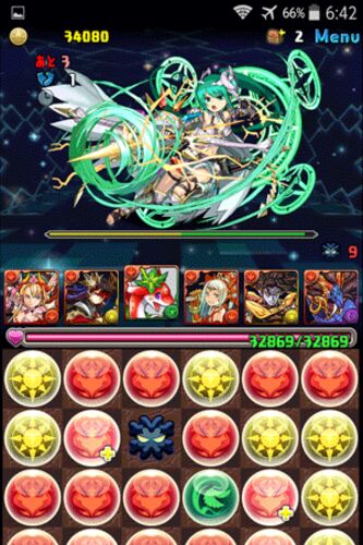 1階 発狂しなければ楽々 闇をつなげなければ倍率出ないので発狂はまずしない。のんびり闇とスキルをためて、14個から8個は残して突破。バインドを喰らったらパンドラちゃんで治療可能。 2階 ワンパンが無難 1階でためた闇ドロップで1列から2個飛び出した8個…
