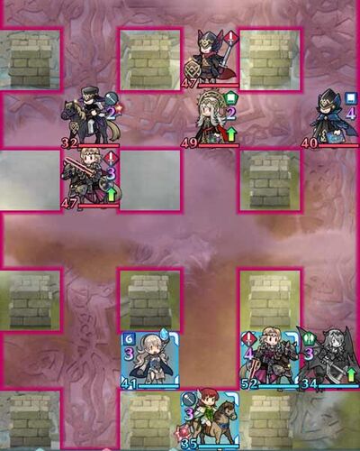 ミッション 無属性を入れて4人全員生存 無属性は逃げ惑う役が無難か。緑魔を全距離反撃したいのでマークスさん。敵のマークスさんを青の守備の高い人でガッチリ受ける。青魔は邪魔くさいのでワンパン出来る緑で。 全般的に良相性で受け止めればあっさりクリ…