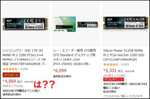 512GBよりも安くなっている……。急げ!!恐らく自身の勘では本日だけ、下手したら夜にはもう価格が戻っているかもしれない。 ※なお、相性が厳しいASRockのマザーボードで使えることを確認している(自身のマザーはAB350Pro4)下にもリンクを貼っておいた(ア…