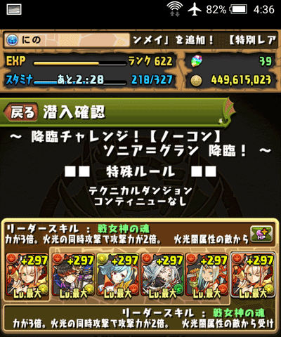 5階 ダメージ1/4なので盤面を整理して叩くだけ。発狂すると危険なのでじっくりドロップをためよう